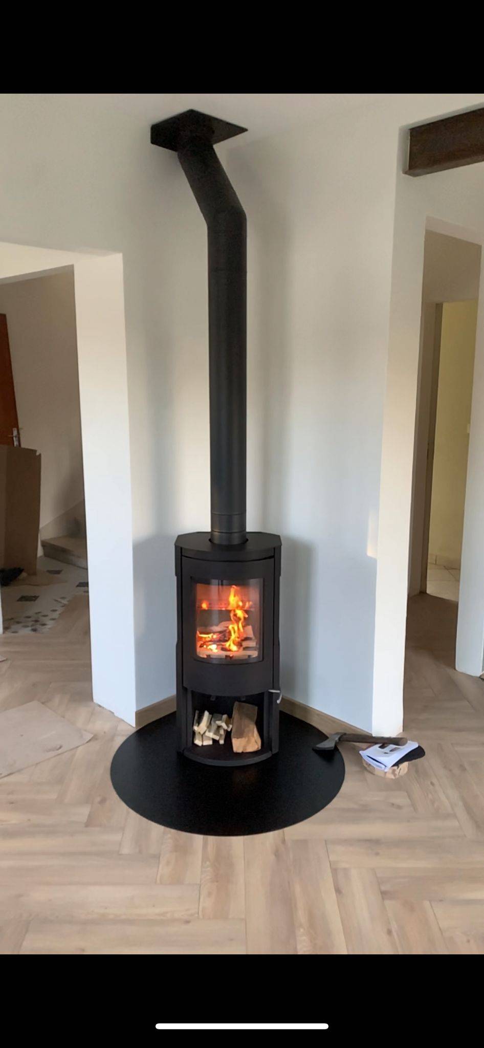 Ils disposaient d'un conduit de fumée maçonné, qui pouvait convenir pour etre valorisé, et avoir un emplacement de poêle compatible avec leur projet d'aménagement.
