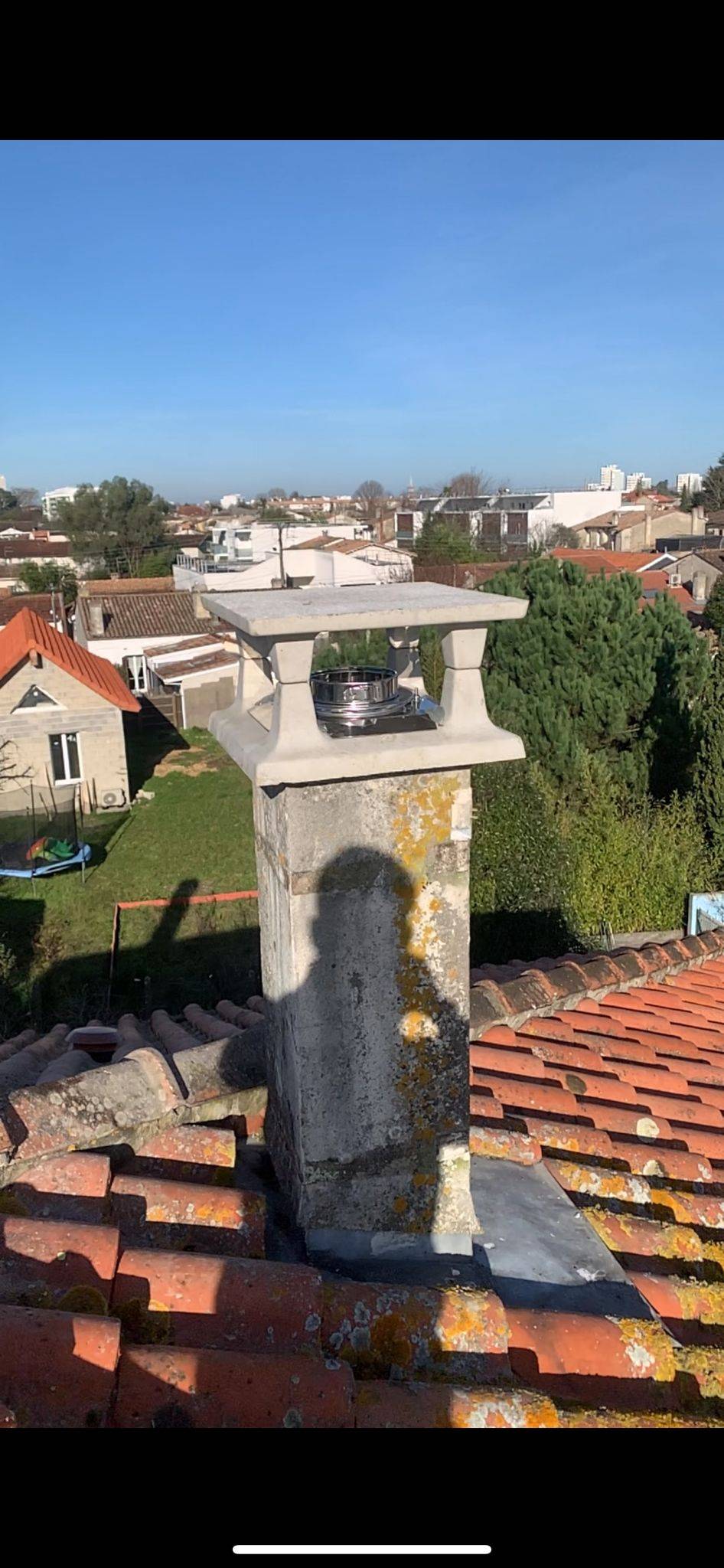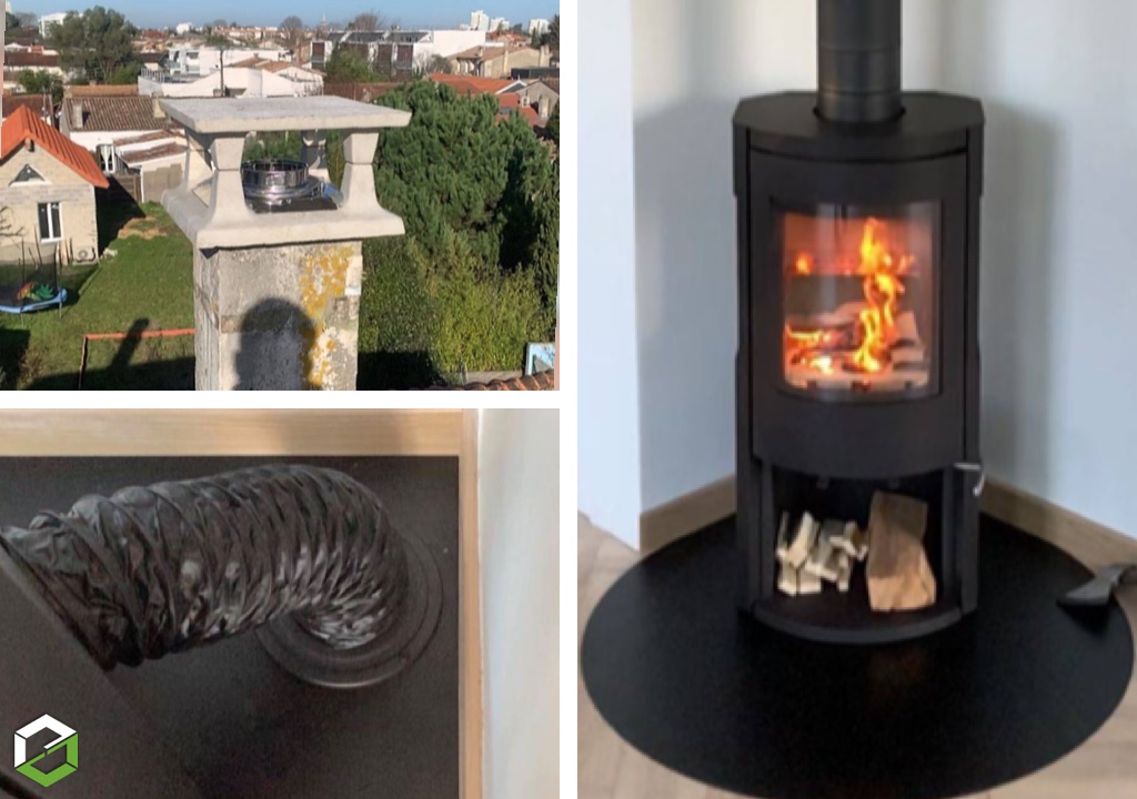 Nous avons tubé en flexible inox le conduit maçonné, et remplacé le chapeau aspirateur béton existant.