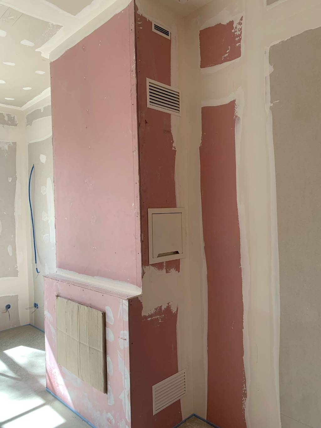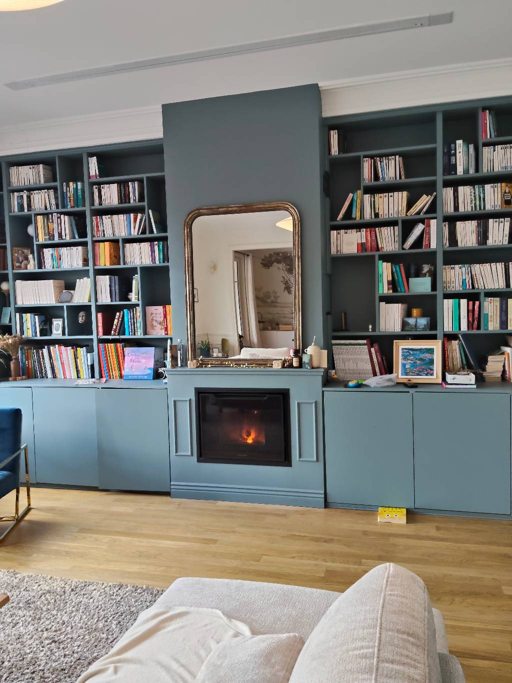 Le client a fait réalisé un agencement autour en gardant les grilles de ventilation d'air chaud dégagées.