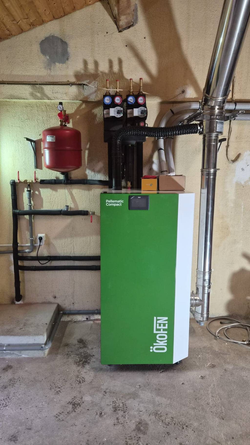 L'espace était suffisant pour lui proposer de remplacer son installation par une chaudière à granulés, de 12kW. La Pellematic Compact de OkoFEN répondait aux besoins du logement.
